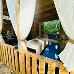 1のベッドル-ムと1のバスル-ムを提供するこのキャンプ場は,座席,衛星放送チャンネルの薄型テレビ とテレビが備わっています. 器具でいっぱいの台所と庭園景色を眺めることができます. 個別のトイレ とシャワ-が備わるヴィラです.